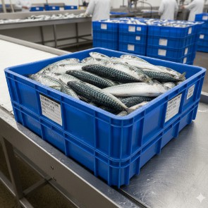 Producto fresco entero: Bandejas de plástico de 25 kg aprox.