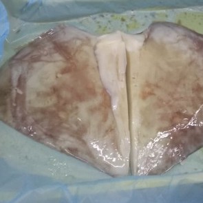 Producto congelado: Block de 10 kg envuelto en lámina polietileno en sacos o cajas de 20 kg.